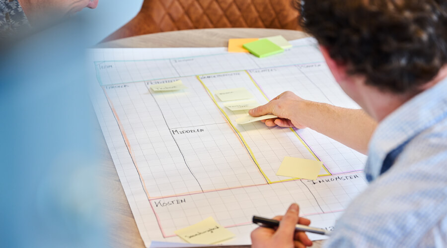 Vanuit een inventariserend gesprek over de toekomstvisie van het bedrijf, doorliep Geert met ieder gezinslid een persoonlijk ontwikkeltraject. Dat startte bij het individueel invullen van het Business Model Canvas, een methode om businessmodellen in kaart te brengen.