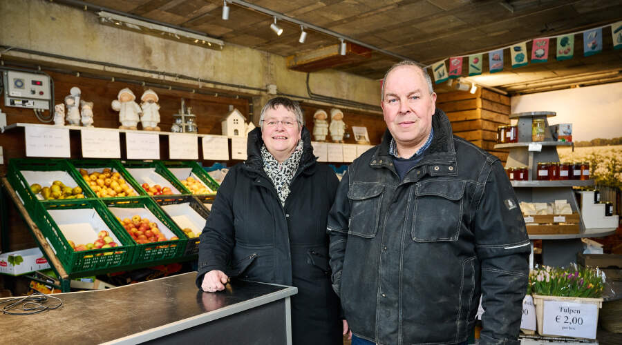 Esthers ouders runnen het akkerbouwbedrijf met boerderijwinkel Vers uit de Nop. Samen met haar man Hans werkt Esther naast haar baan in de zorg mee op het bedrijf. ‘Omdat Hans minder is gaan werken om zich meer in te kunnen zetten op de boerderij en ik ook steeds vaker meehielp, ontstond het idee dat wij het bedrijf misschien wel wilden overnemen’, vertelt Esther. ‘Maar hoe pak je zoiets aan? Waar moet je dan allemaal op letten? En hoe ga je hierover met elkaar in gesprek? Toen we vastliepen op dit onderwerp, namen we contact op met Jan Lucas. De klik was er meteen.’