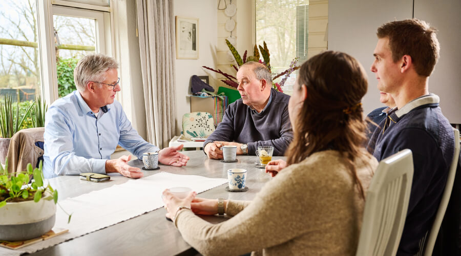Vanuit zijn expertise in de begeleiding van familiebedrijven heeft Jan Lucas de familie begeleid bij het maken van belangrijke keuzes voor de toekomst. Esther legt uit hoe dat proces is verlopen. ‘De eerste keer kwam Jan Lucas bij ons op de boerderij en hebben we met z’n allen open gepraat over waar we naartoe wilden en op welke punten we vastliepen. Dat was direct al heel fijn. Hij snapte wat wij bedoelden, vertelde over hoe bedrijfsopvolgingstrajecten eruitzien en gaf ook aan dat elke situatie verschillend is.’